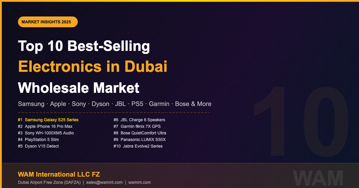 What’s hot in Dubai’s wholesale electronics market in 2025? As one of the world’s leading authorized B2B electronics distributors operating from Dubai Airport Free Zone (DAFZA), WAM International has a front-row seat to the most in-demand products crossing the globe. This data-driven guide reveals the top 10 best-selling electronics categories and specific models driving wholesale demand across the UAE, GCC, Africa, and South Asia.